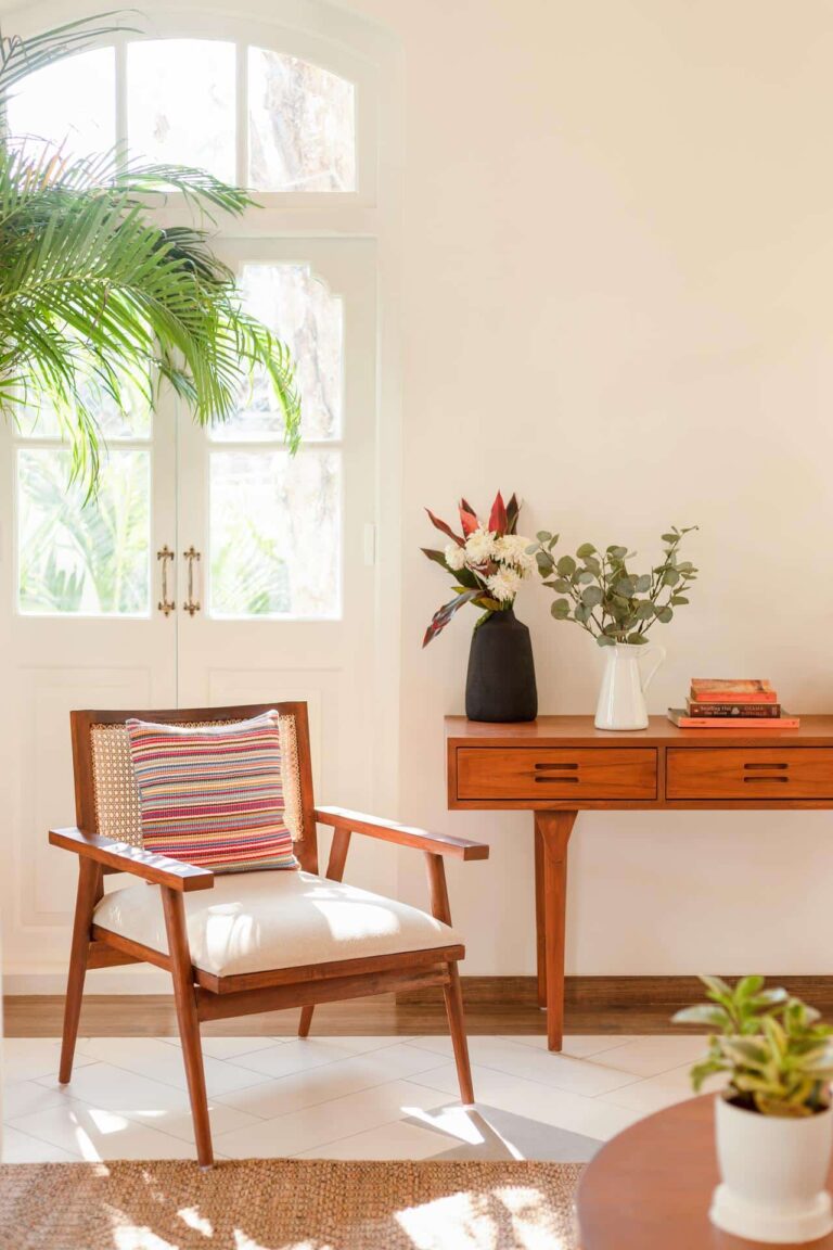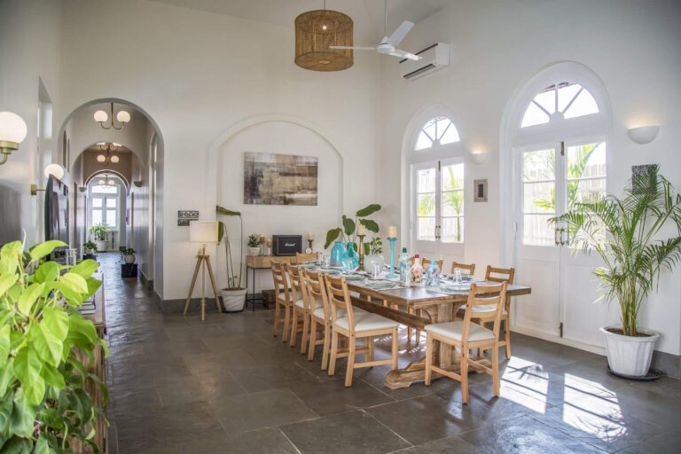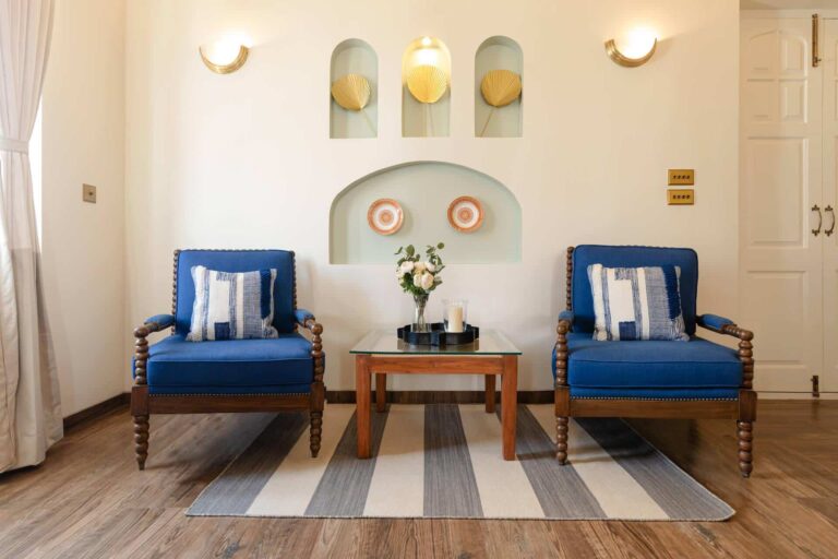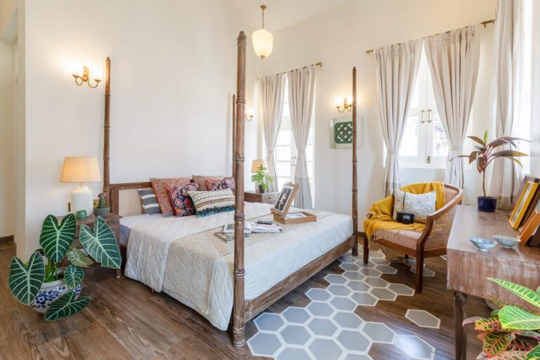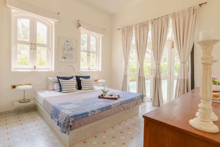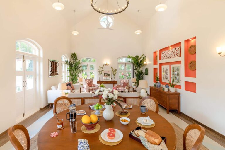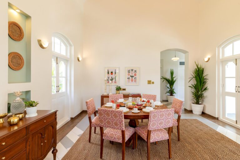 The second home in the Silvio five-villa gated community, Villa B spans ~370 sqm and is a comely addition that fits right into its surroundings. The Goan-Portuguese style home features sit outs and terraces that frame a pretty view in addition to an indoor-outdoor engagement that is facilitated by large windows and open doors. The local flavour is visible in the flooring and the furnishings that elevate the luxury imbued in the space. This is a retreat that you may be too comfortable here to think of ever leaving — something supplemented by the fact that there is much to do just minutes away, should you choose to.