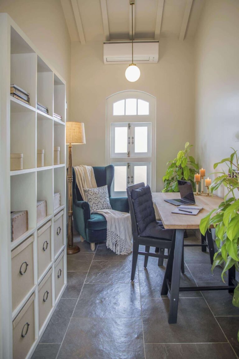 The last among the 9 villas that dot the ~500 sqm parcel of land that is the Monforte gated community, Villa I is an elegant three-storey home. The double-height living and dining area that is flooded with natural light is a welcoming space beyond the pretty white front door. A subtle, fuss-free design aesthetic is the overarching look of Villa I. The minimalism, however, doesn’t detract from the luxury, with fine-quality materials used throughout the house. The monochromatic colour palate is a wonderful contrast to the cement tiles and handmade leather-finished grey stone that offset the earthy interiors. Chic minimalism was never this compelling.