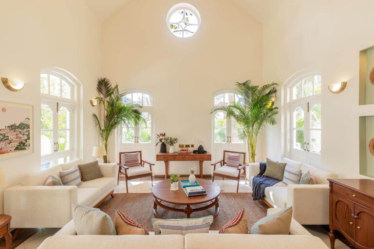 Veer off the winding lanes of Assagaon, Goa’s most charming village, and you’ll discover the magnificent Villa Alenteho, an idyllic hideaway spread over ~ 513 sqm, comfortably cocooned amidst the verdant greenscapes.