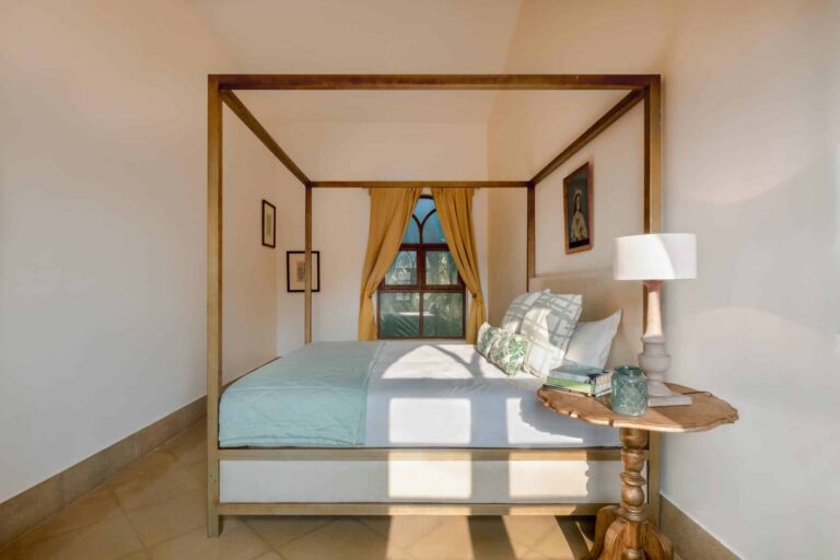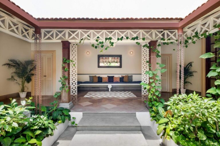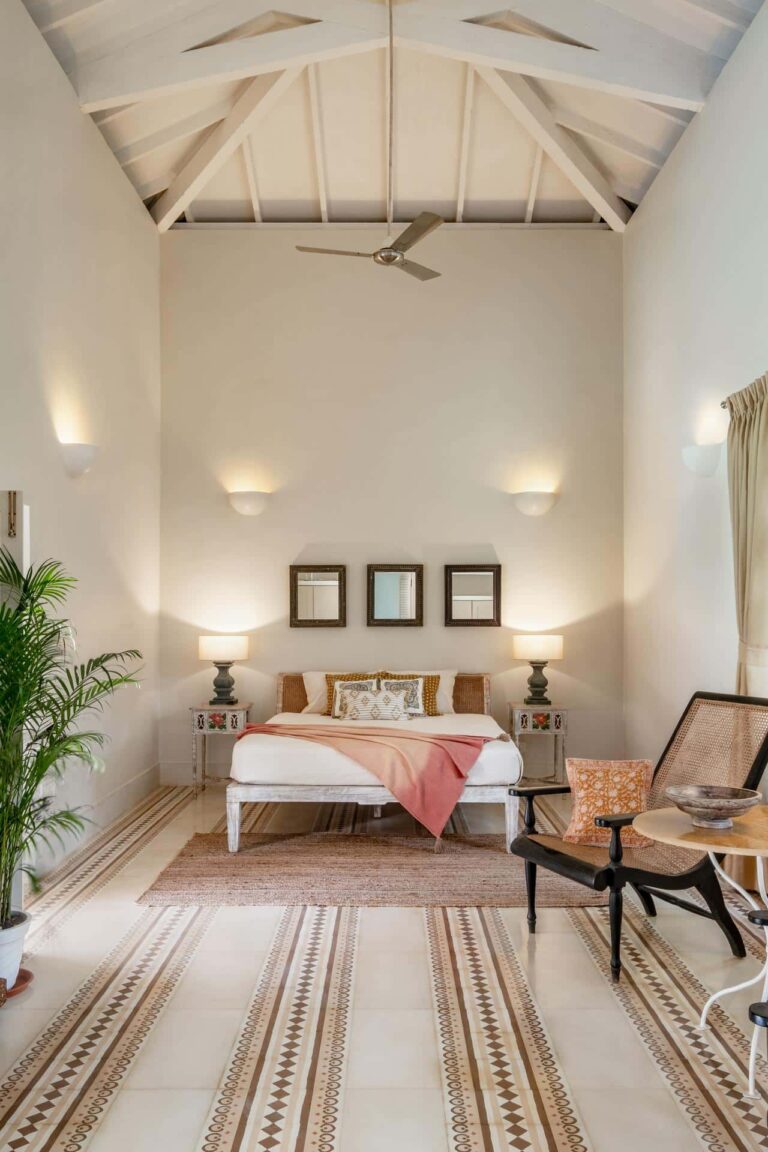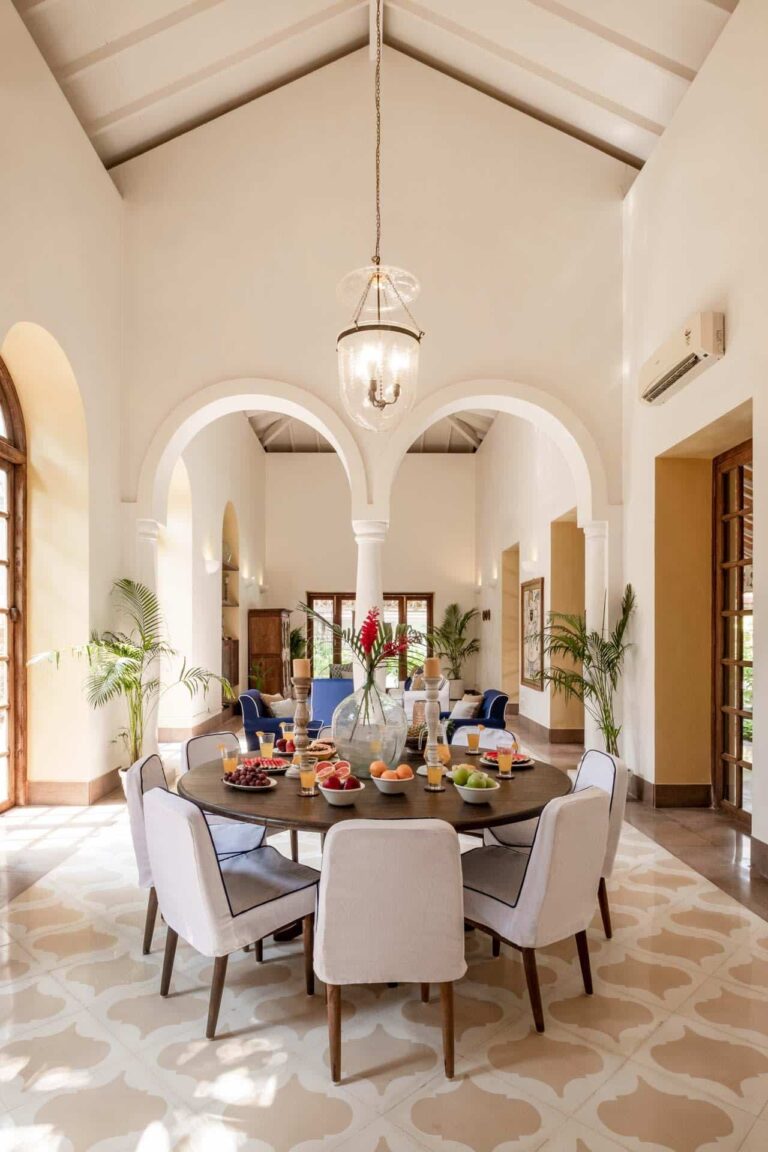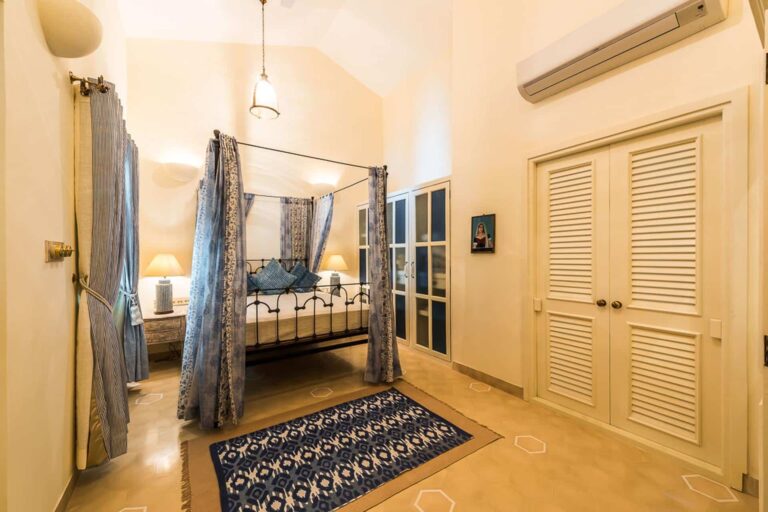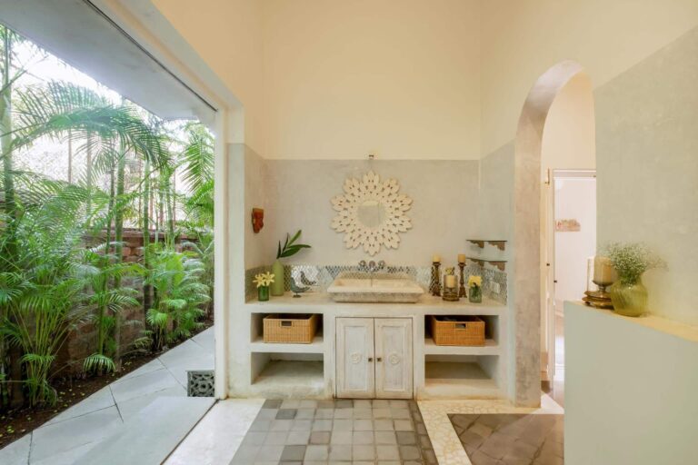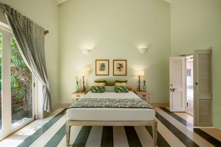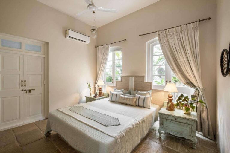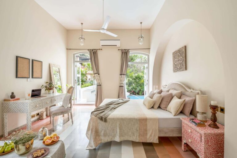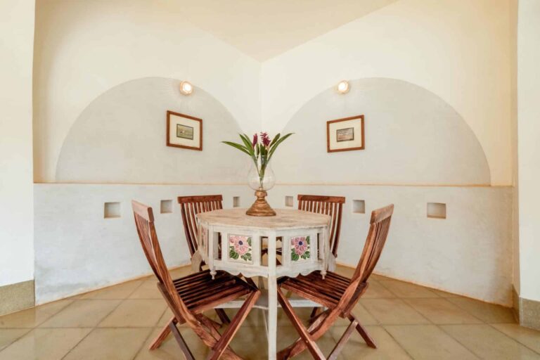 The second home in the Silvio five-villa gated community, Villa B spans ~370 sqm and is a comely addition that fits right into its surroundings. The Goan-Portuguese style home features sit outs and terraces that frame a pretty view in addition to an indoor-outdoor engagement that is facilitated by large windows and open doors. The local flavour is visible in the flooring and the furnishings that elevate the luxury imbued in the space. This is a retreat that you may be too comfortable here to think of ever leaving — something supplemented by the fact that there is much to do just minutes away, should you choose to.