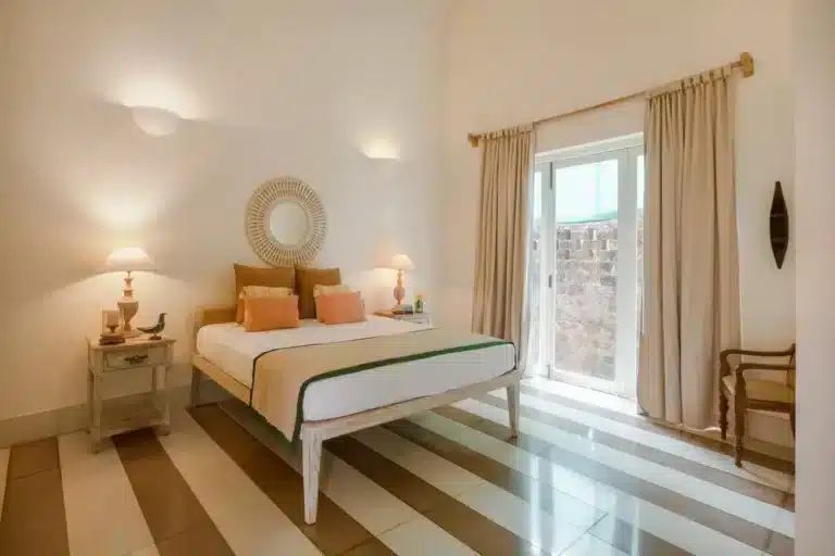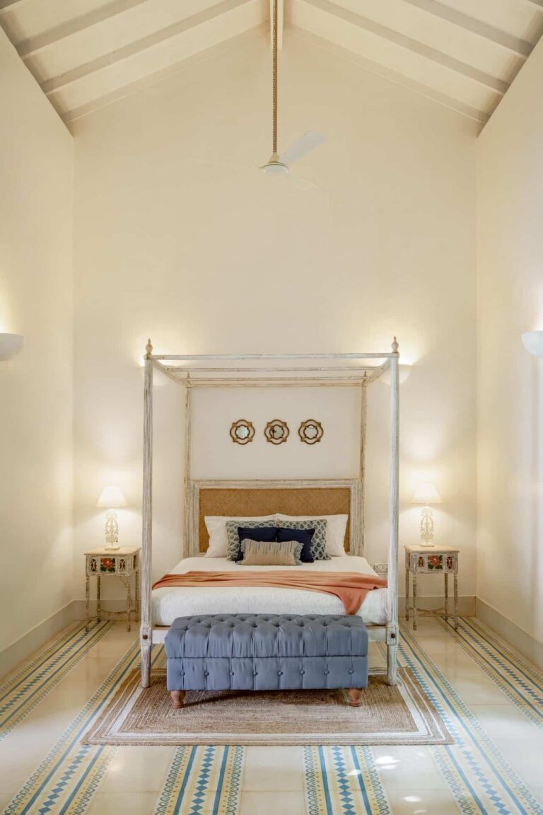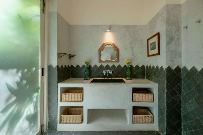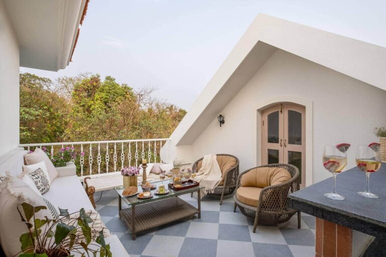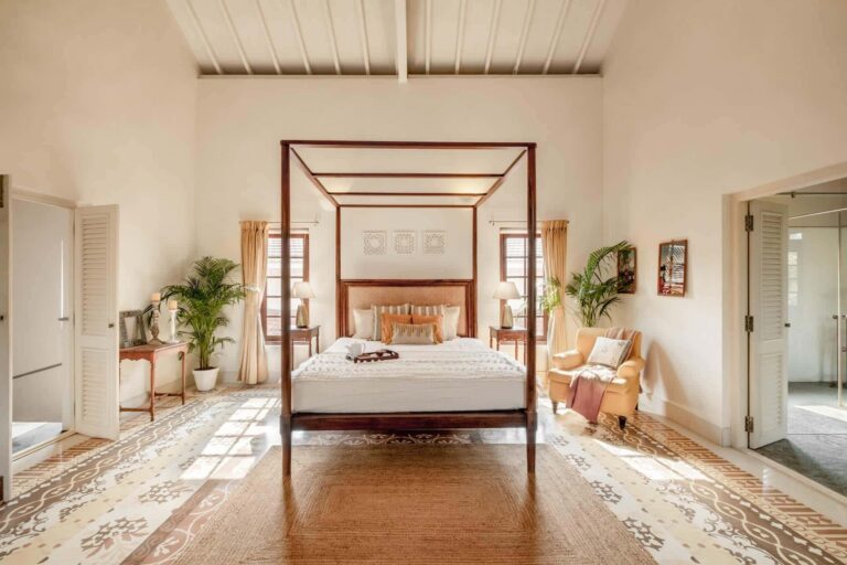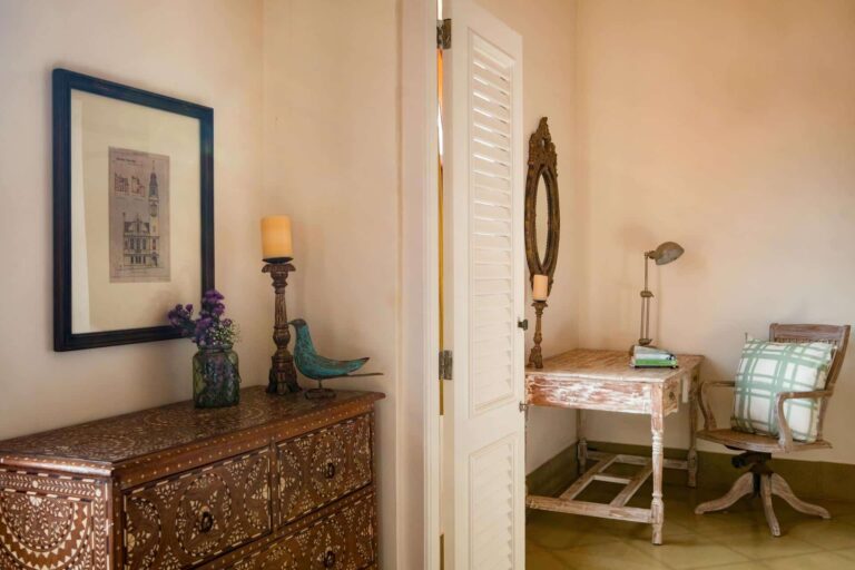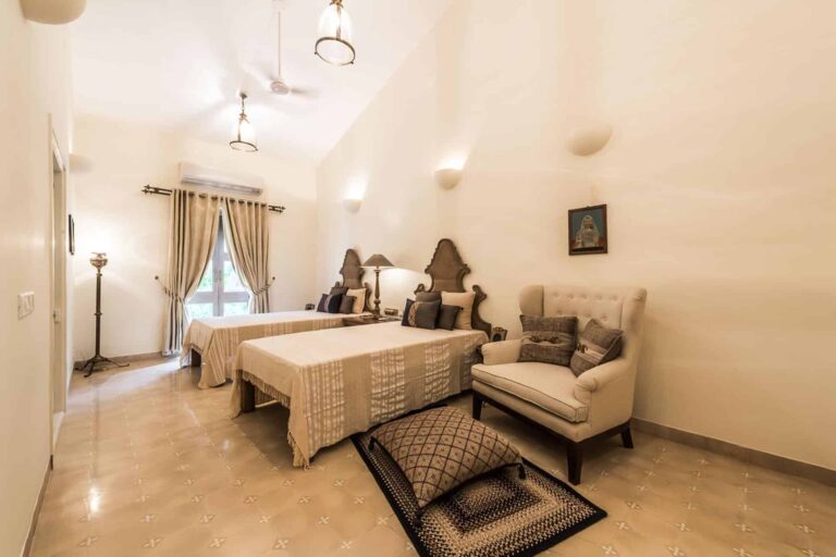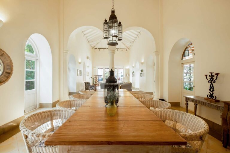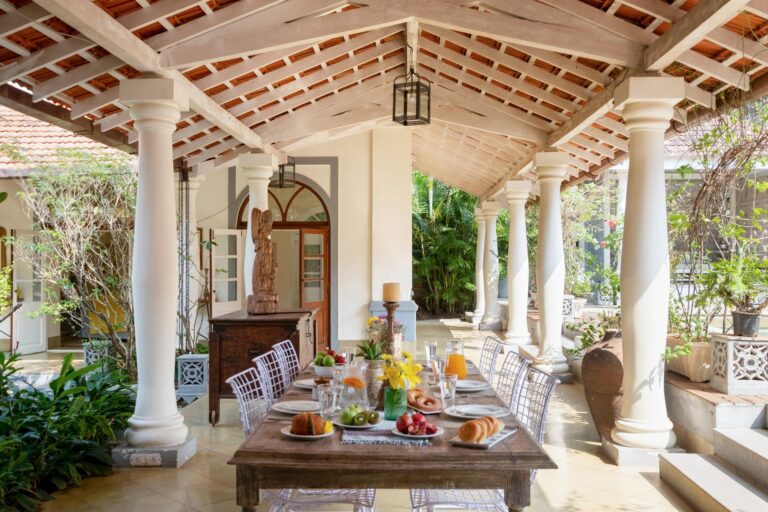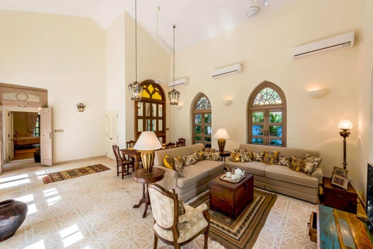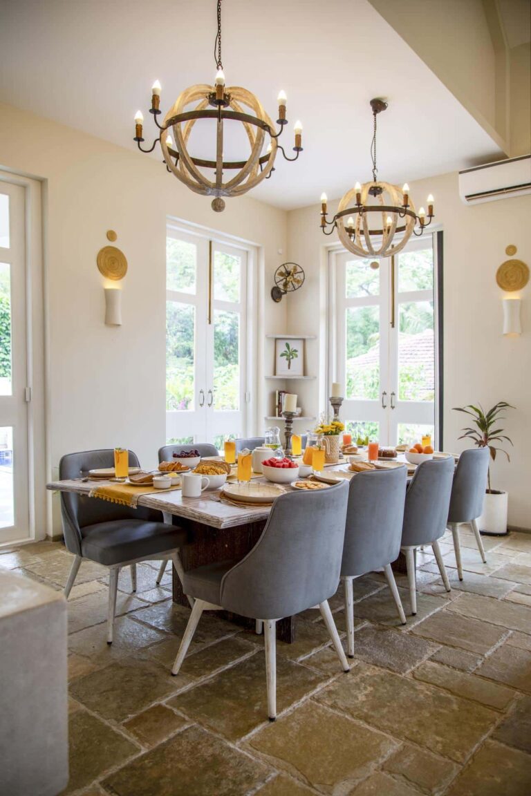 The second home in the Silvio five-villa gated community, Villa B spans ~370 sqm and is a comely addition that fits right into its surroundings. The Goan-Portuguese style home features sit outs and terraces that frame a pretty view in addition to an indoor-outdoor engagement that is facilitated by large windows and open doors. The local flavour is visible in the flooring and the furnishings that elevate the luxury imbued in the space. This is a retreat that you may be too comfortable here to think of ever leaving — something supplemented by the fact that there is much to do just minutes away, should you choose to.