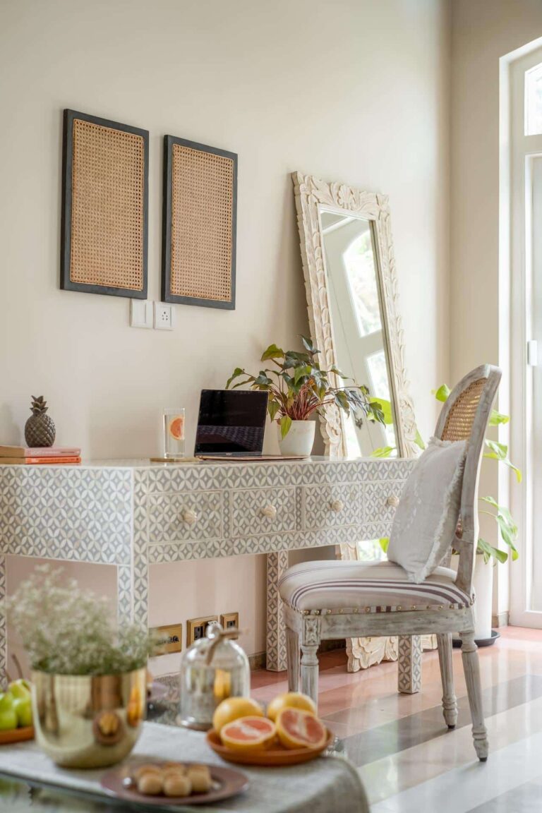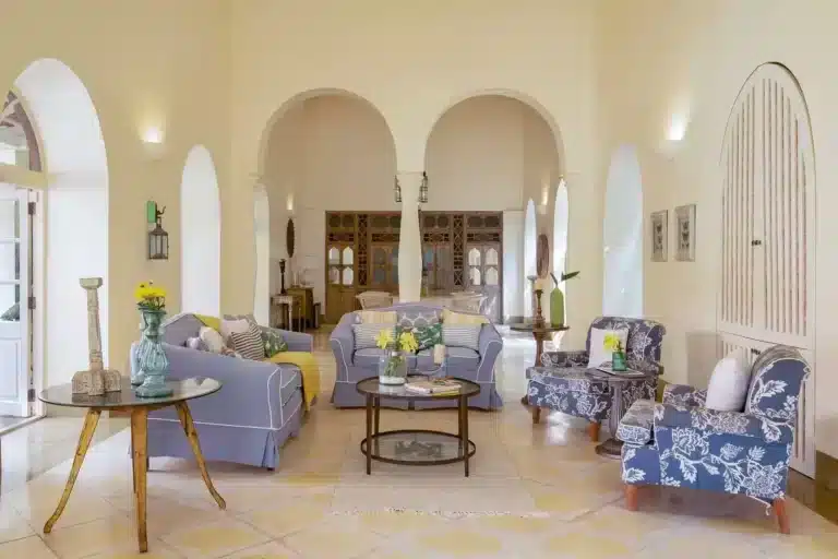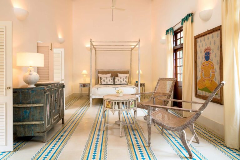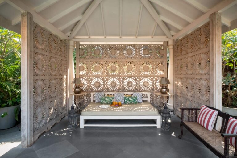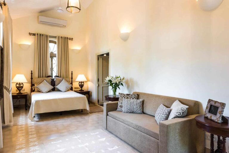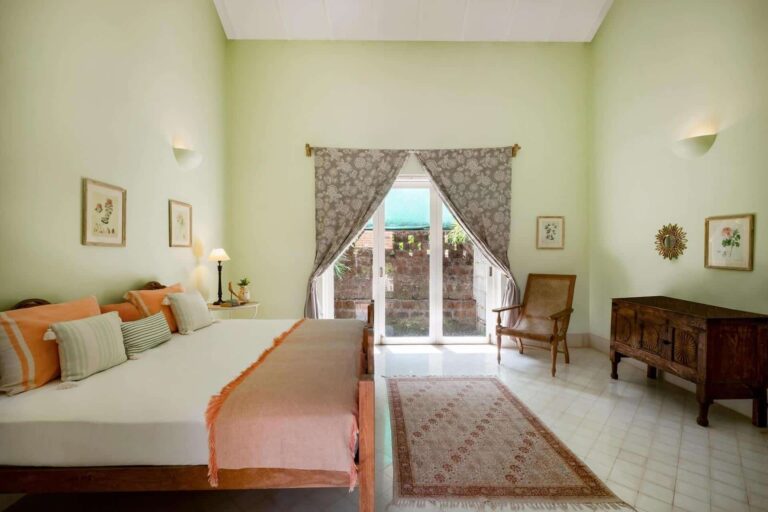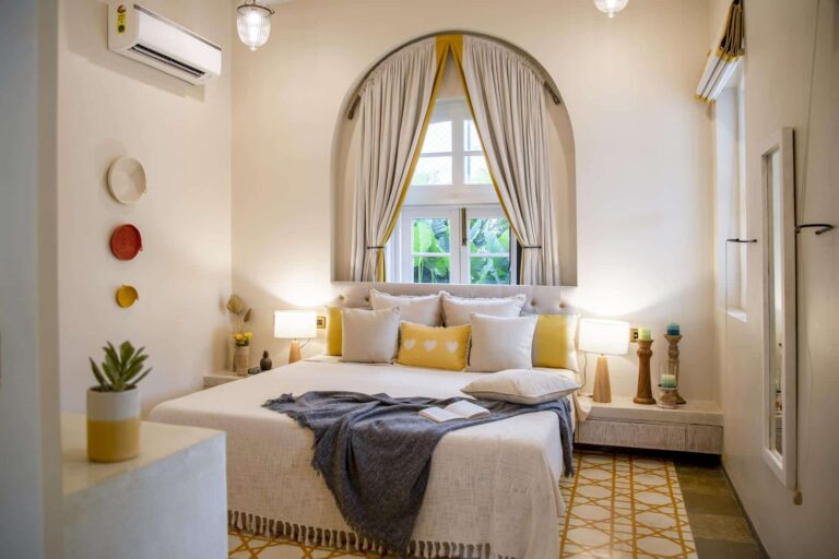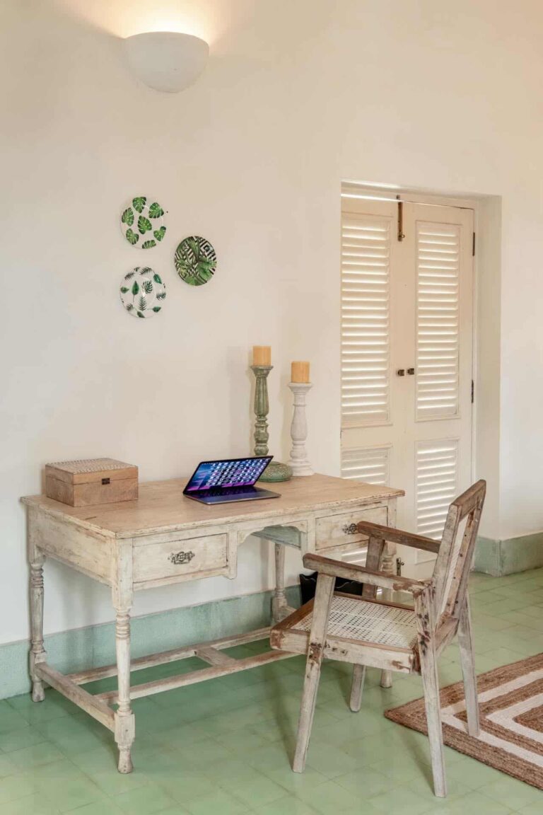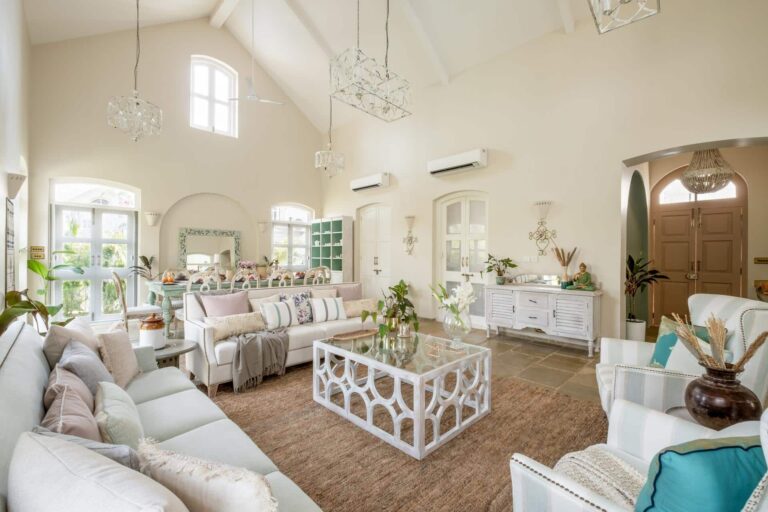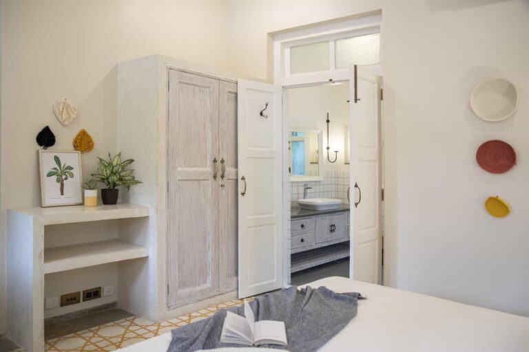 The second home in the Silvio five-villa gated community, Villa B spans ~370 sqm and is a comely addition that fits right into its surroundings. The Goan-Portuguese style home features sit outs and terraces that frame a pretty view in addition to an indoor-outdoor engagement that is facilitated by large windows and open doors. The local flavour is visible in the flooring and the furnishings that elevate the luxury imbued in the space. This is a retreat that you may be too comfortable here to think of ever leaving — something supplemented by the fact that there is much to do just minutes away, should you choose to.