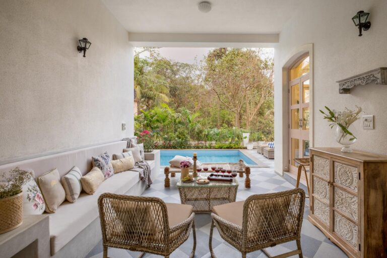 Exclusive and private, Silvio comprises five villas nestled in a quiet corner in Assagao, a captivating microcosm of Goa with its whitewashed churches, Portuguese-style homes and peaceful country lanes. Within the embrace of Silvio Villa’s extensive area is Villa A, occupying ~355 sqm. Like the other four counterparts located here, Villa A is bright, beautiful and airy, dressed up in a contemporary aesthetic and accessed by a private driveway. Comprising four bedrooms, a pool, sit-outs and balconies, Villa A is an expression of inescapable luxury encased in unmistakable style.